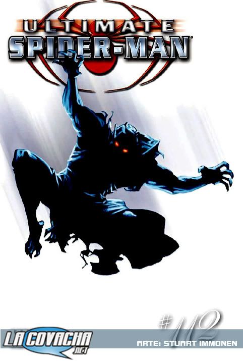 Aquí un paréntesis, usando uno de los recursos favoritos del Señor B, se utilizan dos dibujantes para contar distintas partes de la historia. Por un lado, Bagley se despide del título con la secuencia de la plática entre el sobrino y la tía, donde por cierto vemos un Peter más maduro; y por otro lado tenemos la introducción de Immonen con la secuencia de acción entre Ultimate Spidey y Ultimate Spot.El cabeza de red relata que Spot es al parecer un científico que trabajaba en Roxxon, y tras un mal experimento comenzó a crear hoyos negros sobre su piel; Esta encarnacion de Spot es bastante similar a su versión 616, si acaso la interpretación de Immonen se ve un tanto más terrorífica, como si se tratase de un monstruo más que de un supervillano. El flashback termina con Spot huyendo del laboratorio Roxxon, el cual destruía culpándolos de su actual estado.